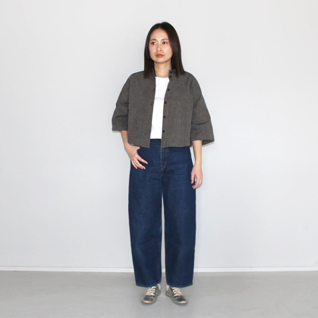2025/SS久留米かすり切替ショートボレロ(無地ダークベージュ)
