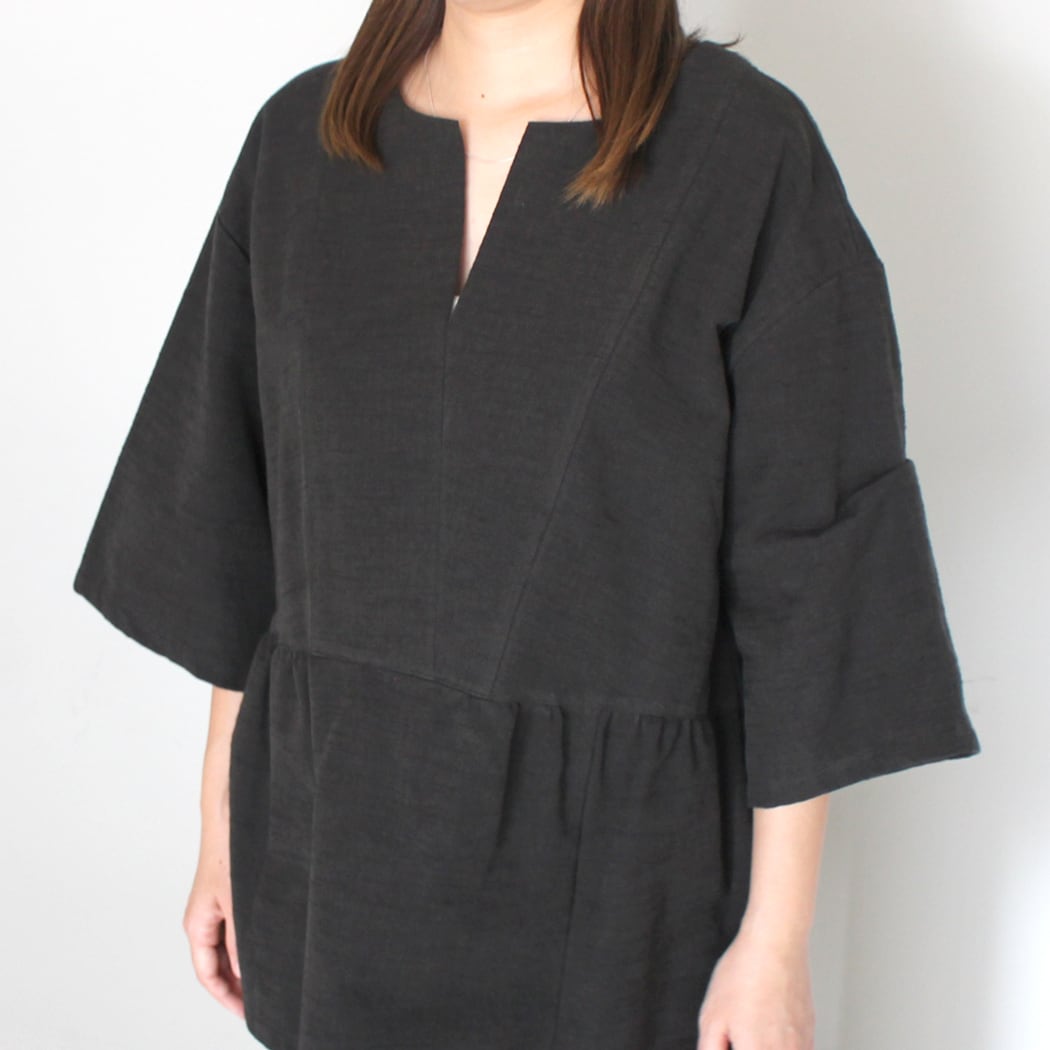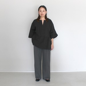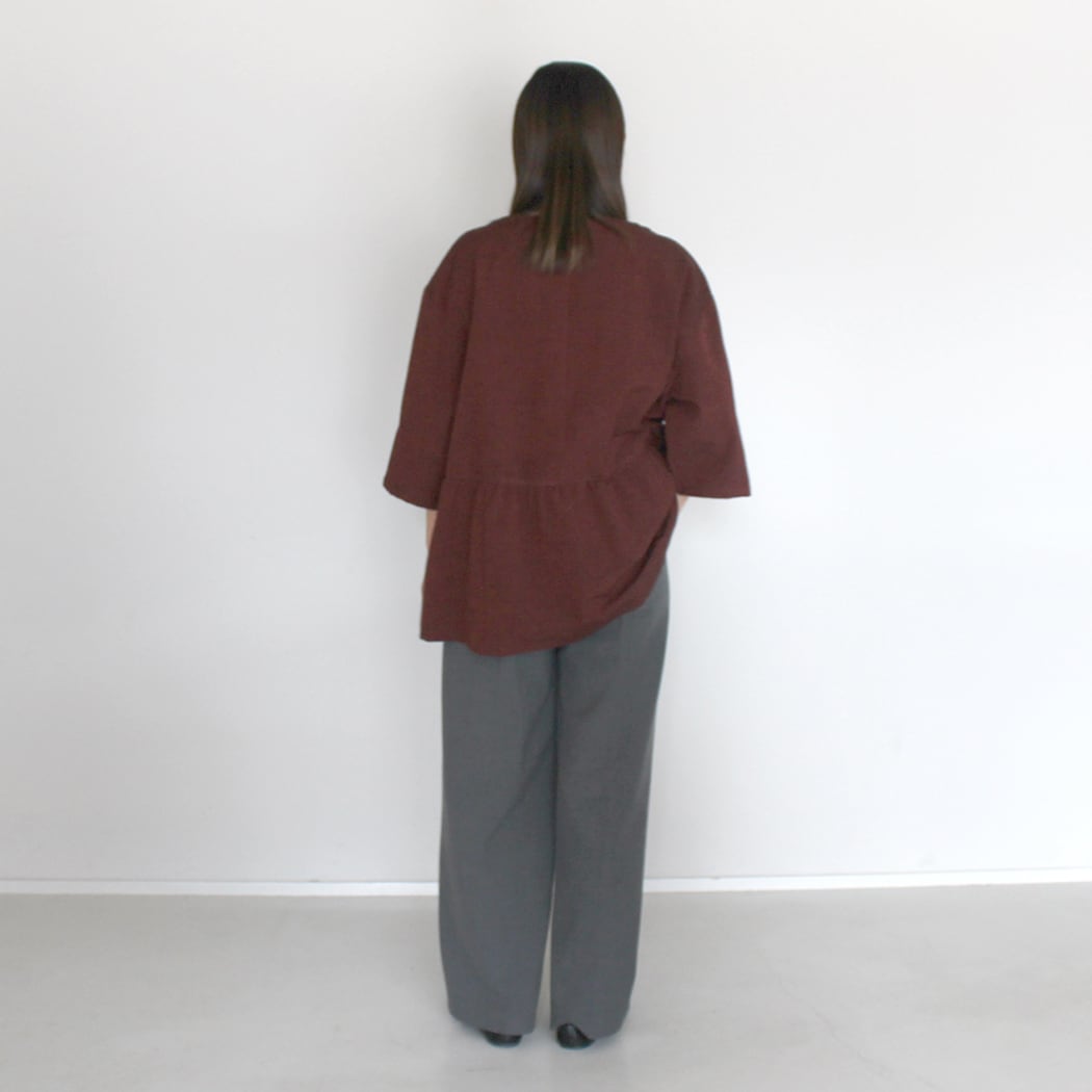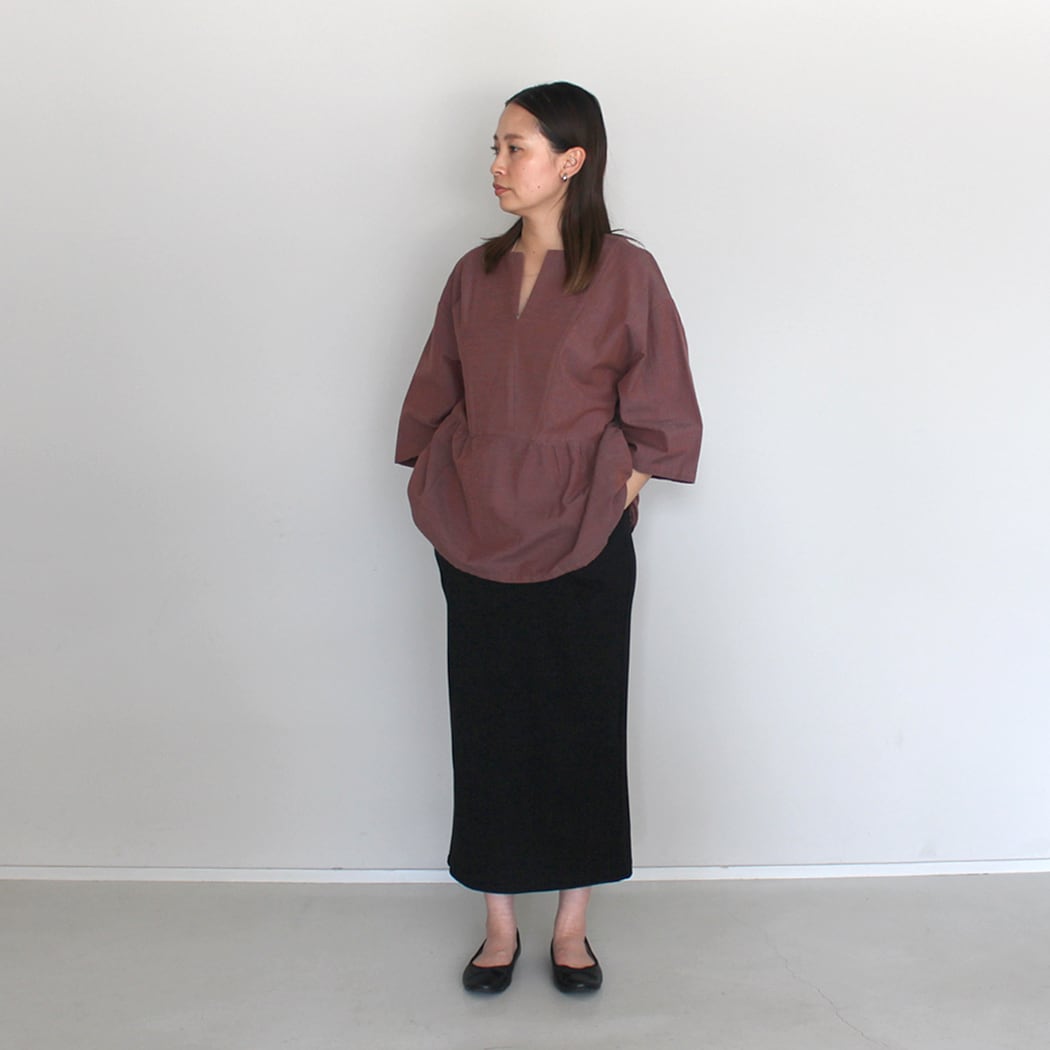 このペプラムブラウスは、長年にわたって愛用できるアイテムとして、多くの方々に人気のデザインです。見た目以上にゆったりとしているので、サイズはフリーサイズですが15号の方まで余裕をもってお召しになれます。着るほどに味わい深い風合いに変わっていく過程もお楽しみいただけるので、ぜひワードローブに加えて毎日のスタイルを楽しんでください!