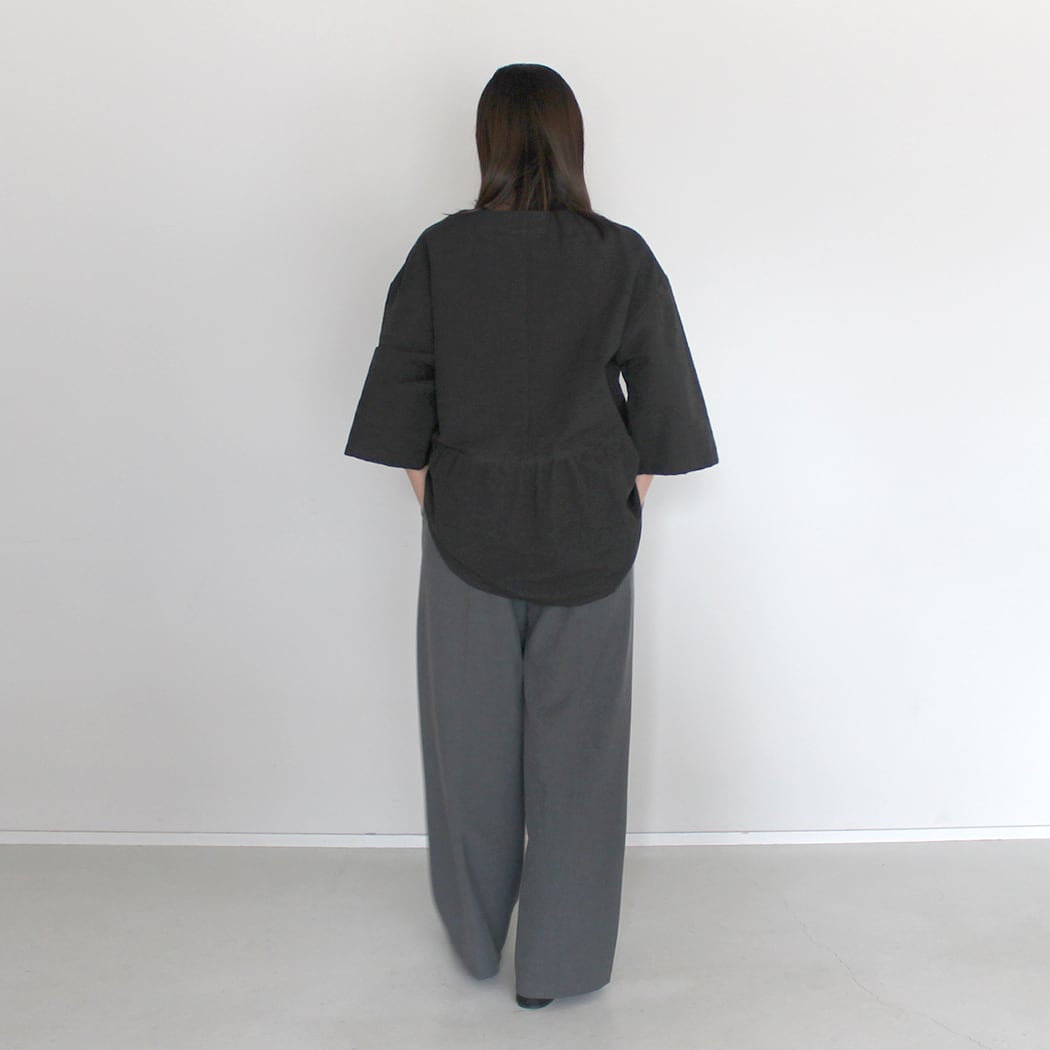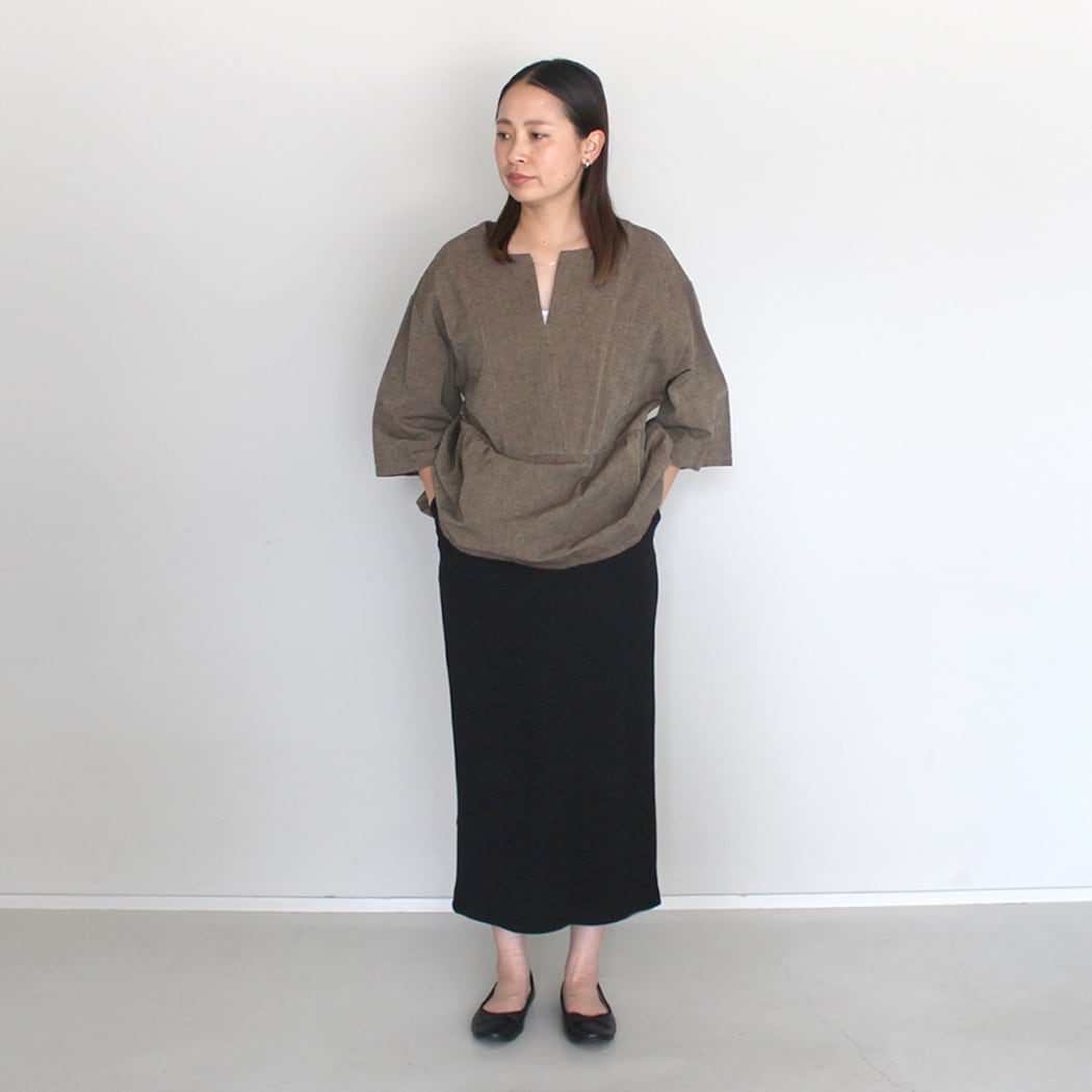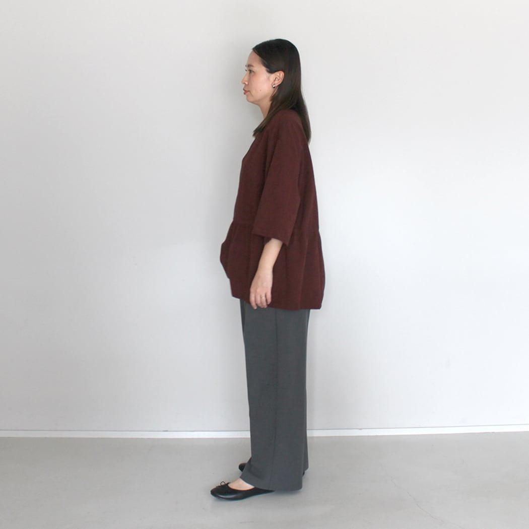 このペプラムブラウスは、長年にわたって愛用できるアイテムとして、多くの方々に人気のデザインです。見た目以上にゆったりとしているので、サイズはフリーサイズですが15号の方まで余裕をもってお召しになれます。着るほどに味わい深い風合いに変わっていく過程もお楽しみいただけるので、ぜひワードローブに加えて毎日のスタイルを楽しんでください!