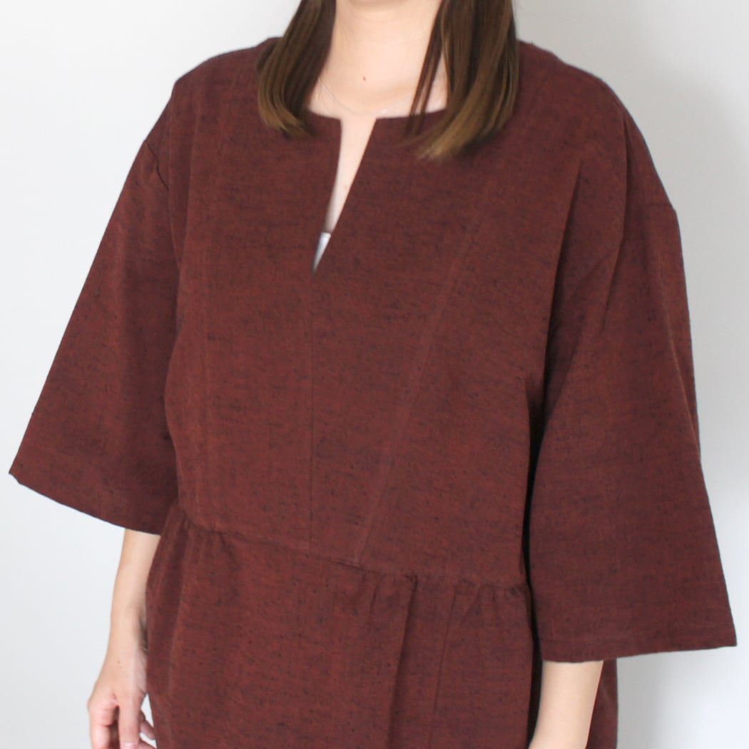 2025/AW久留米かすりのペプラムブラウス【無地4色】