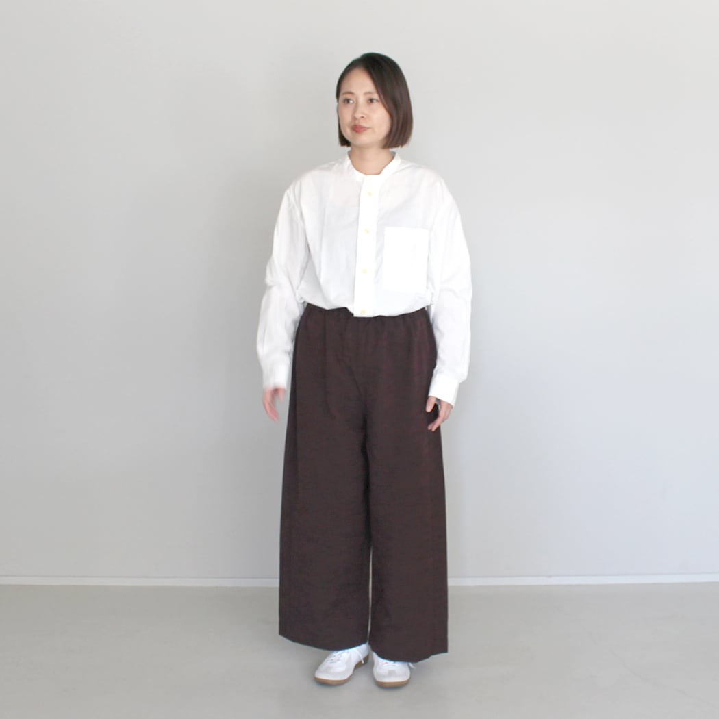 このパンツは、無地ならではのシンプルさと上品さを兼ね備えています。久留米絣の技術により、柔らかな風合いと独特の温かみを楽しむことができます。美しい質感が特長のこのストレートパンツは、カジュアルでありながらもスタイリッシュな印象を与え、日常のおしゃれから特別なシーンまで幅広く活用できる一品です。