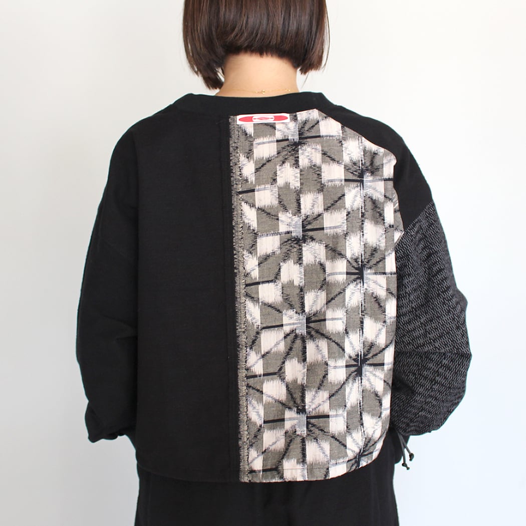 洗練されたデザインと伝統的な技術が融合した、 久留米絣の長袖プルオーバーのショート丈が新登場しました!アシンメトリーな配色が目を引くこのアイテムは、近日のトレンドにピッタリの一枚です。首周りと袖口にはリブが施され、着心地とデザイン性を両立させています。