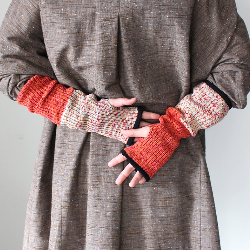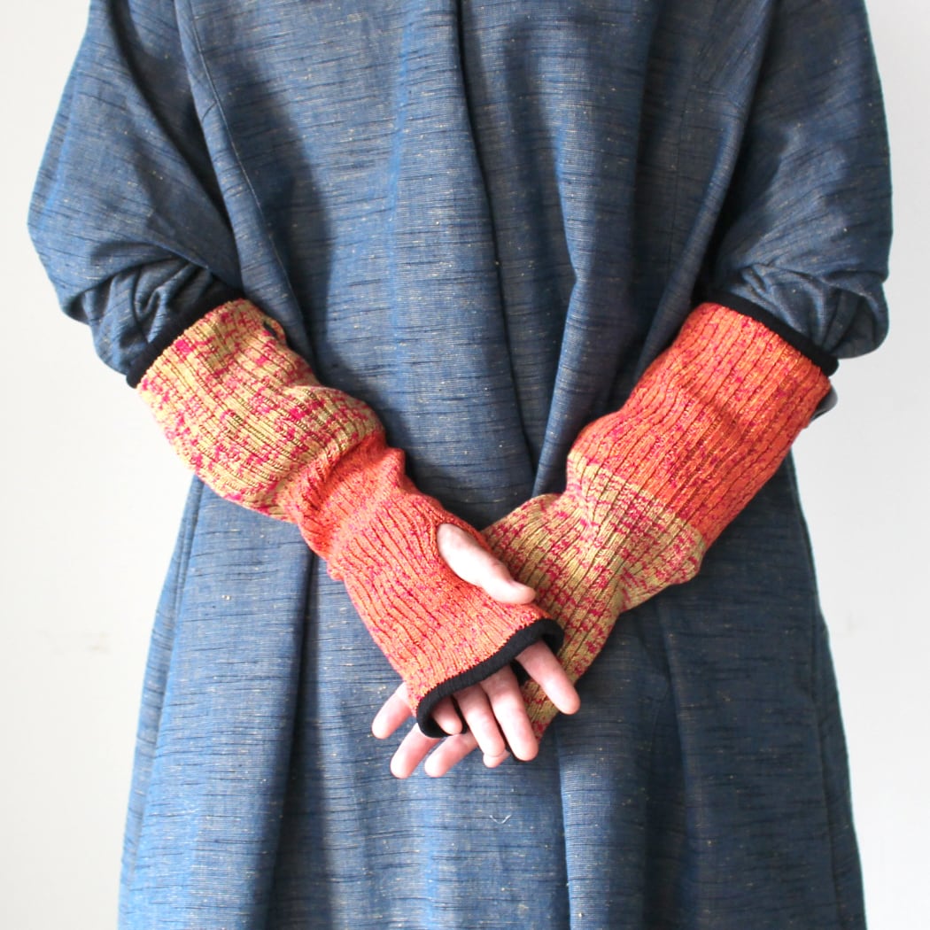 洗練されたデザインと残糸を生かした技術が融合した、くくり糸アームウォーマーが新登場しました!個体差のあるカラーリングが魅力のこのウォーマーは、全5色の中からお好みの色を見つけていただけます。寒い季節にぴったりのアイテムとして、さまざまなシーンで活躍します。