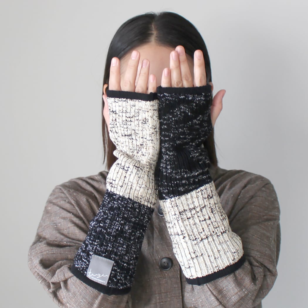 さらに、このアームウォーマーは、なんと2WAY仕様。そのままでも、折り曲げて二重にしても使えるように上下二箇所の指を入れられる穴が開いています。