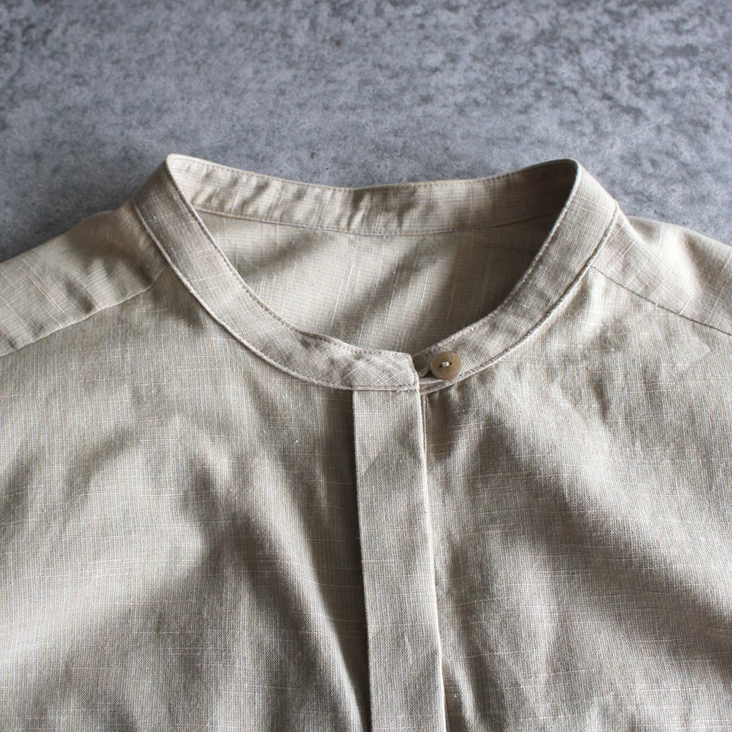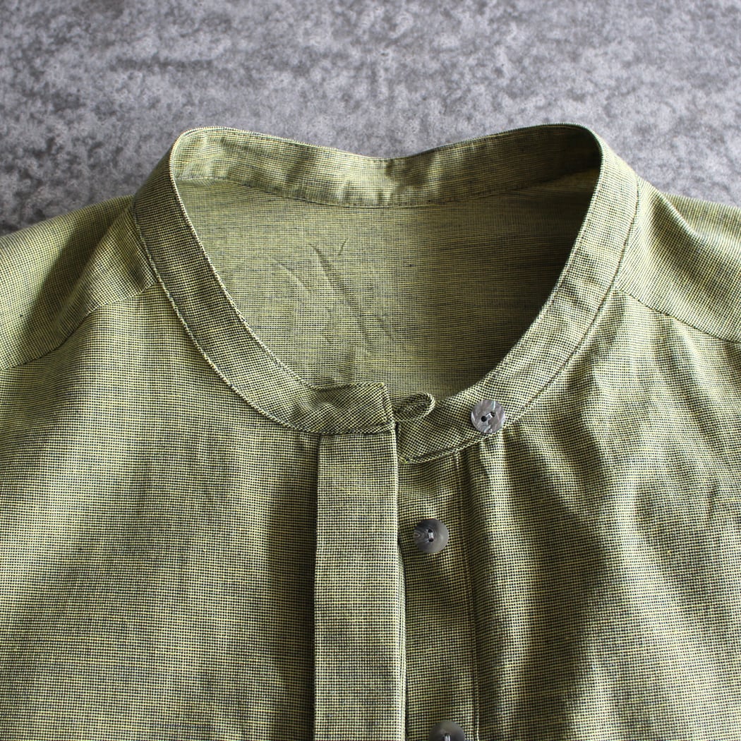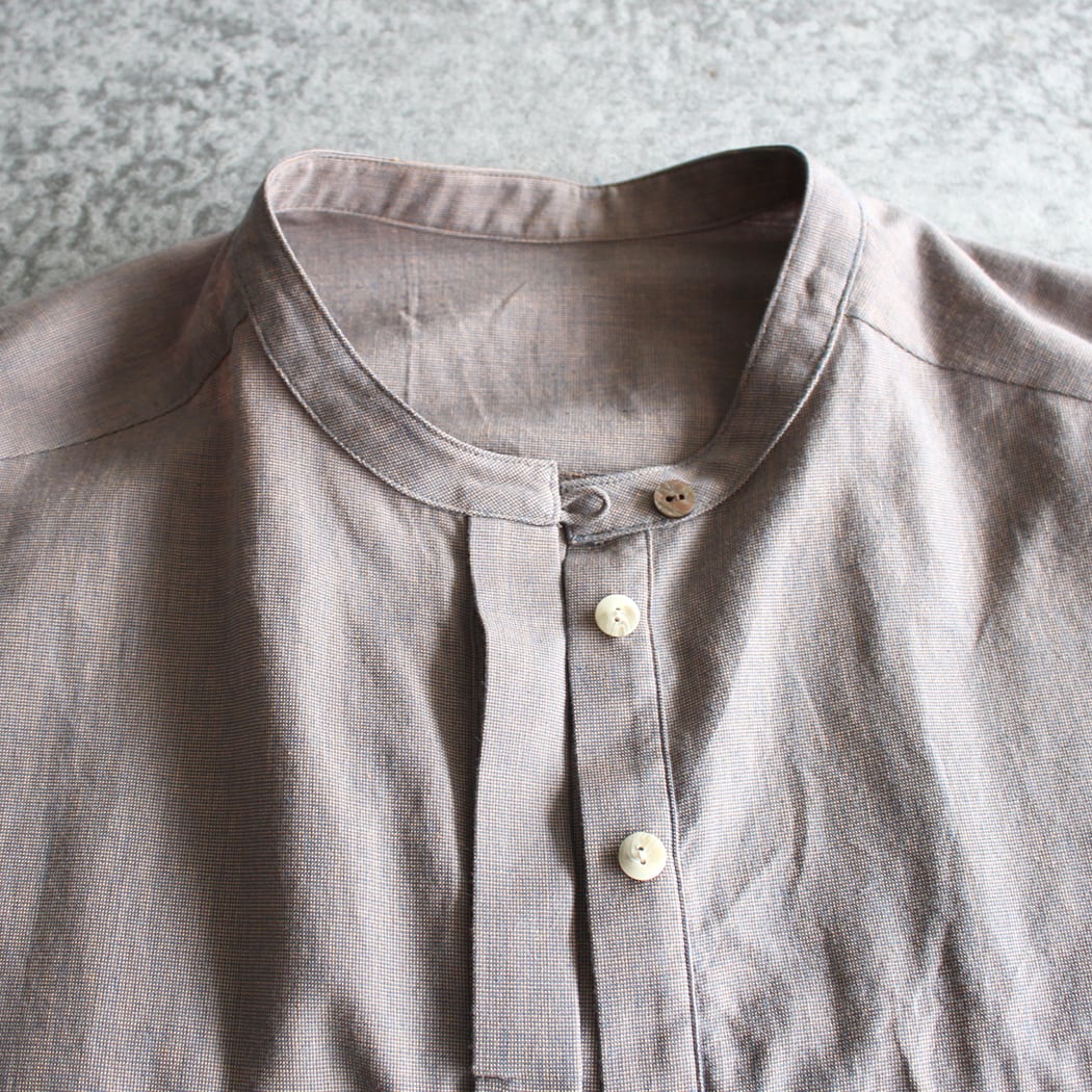 このブラウスは、無地ながらも独特の風合いを持つ久留米かすりで仕立てられています。