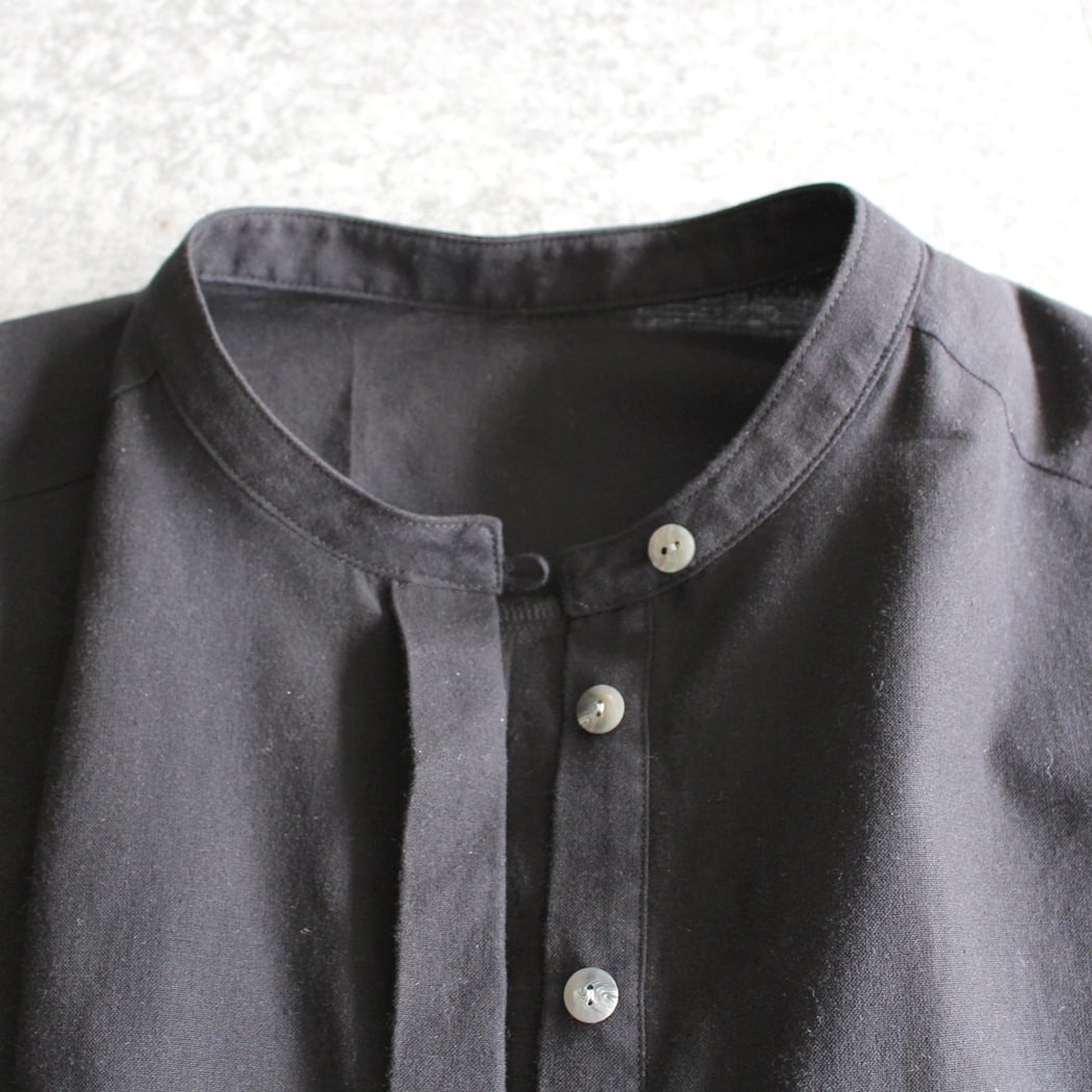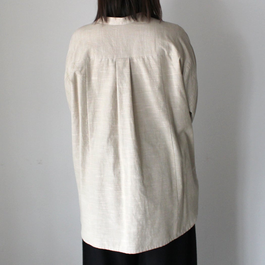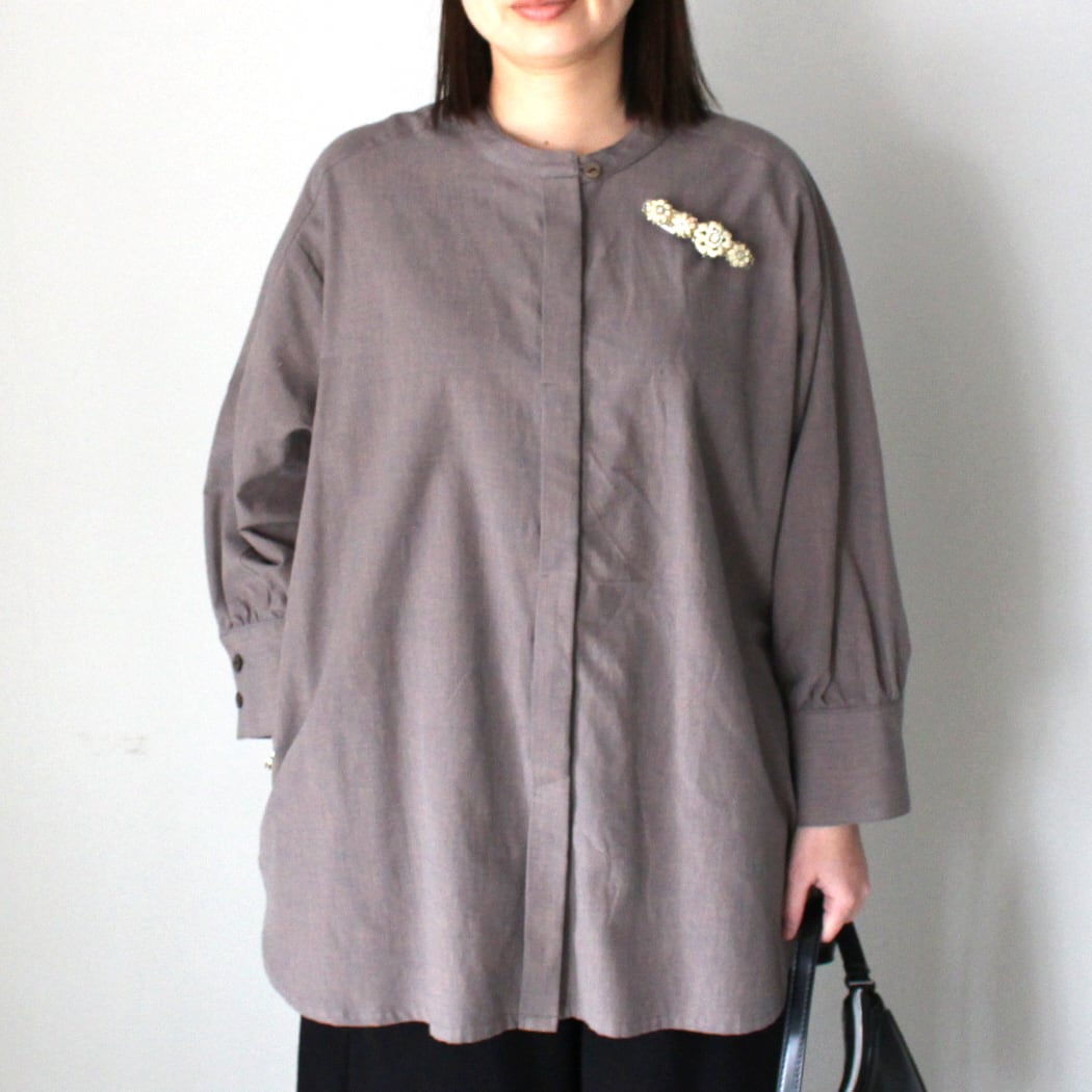 このブラウスは、無地ながらも独特の風合いを持つ久留米かすりで仕立てられています。