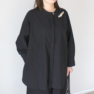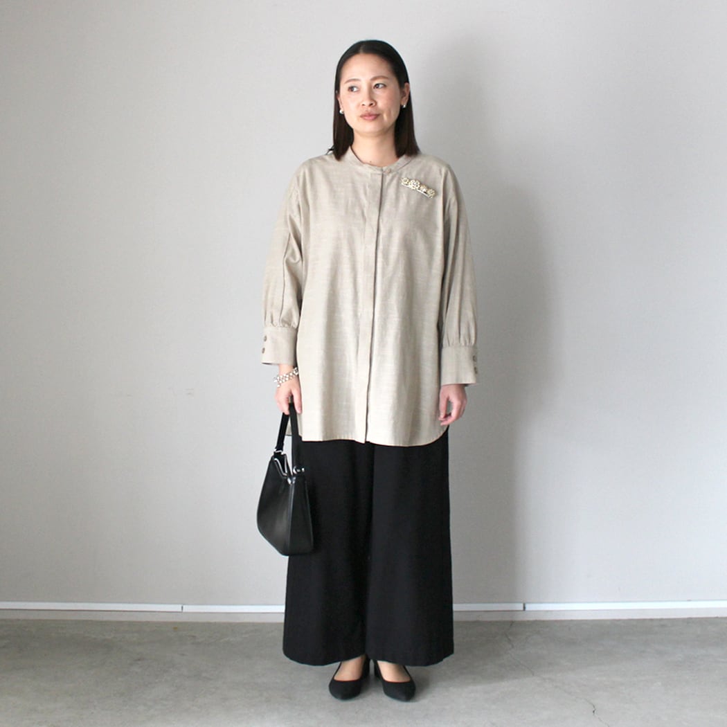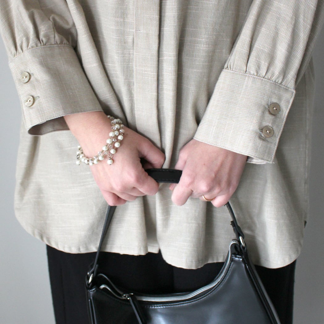こちらのブラウスは、比翼釦が施された洗練されたデザインと腕のラインを綺麗に見せるカフスが魅力です。また、右側には便利なポケットがあり、機能性も兼ね備えています。ドロップショルダーのデザインにより、肩が楽ちんでリラックスした着心地を実現しながら、どんなシーンでもおしゃれに決まります。