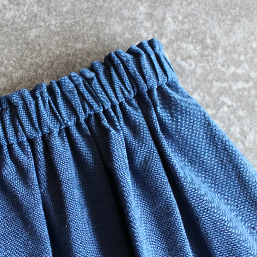 久留米かすりは、長い歴史を持つ日本の伝統的な織物で、その美しさと繊細さが特徴です。このティアードスカートは、無地でありながらも生地の風合いが豊かで、さまざまなコーディネートに馴染む柔らかさがあります。使うほどに風合いが増すのも、久留米かすりの魅力であり、あなたの個性を引き立ててくれます。