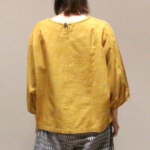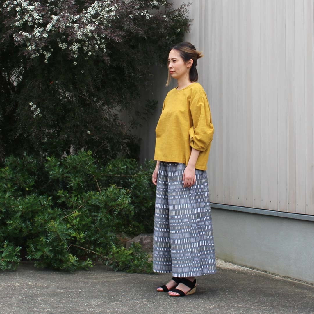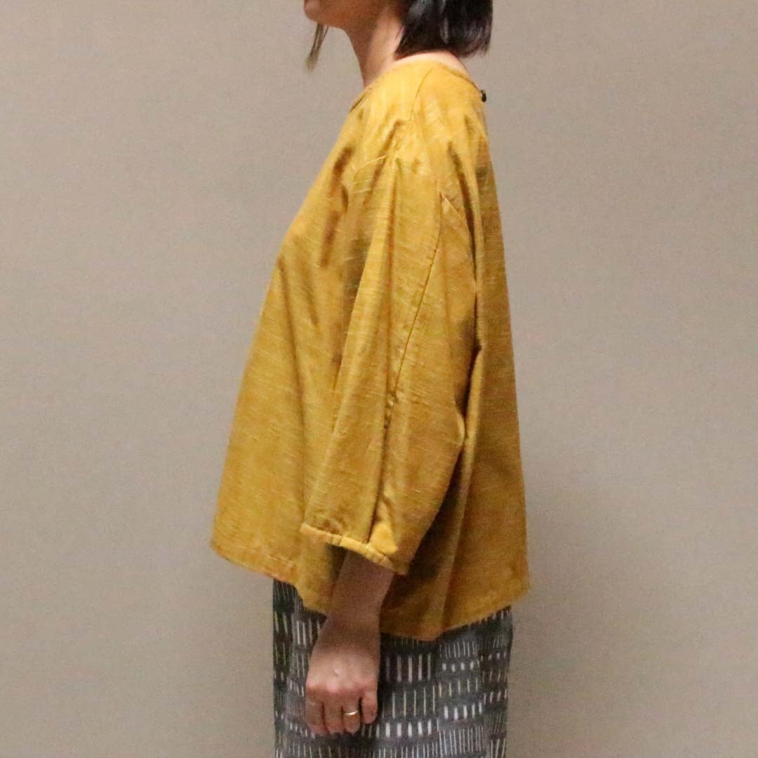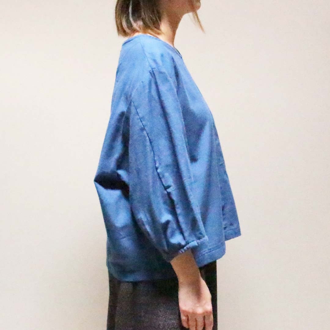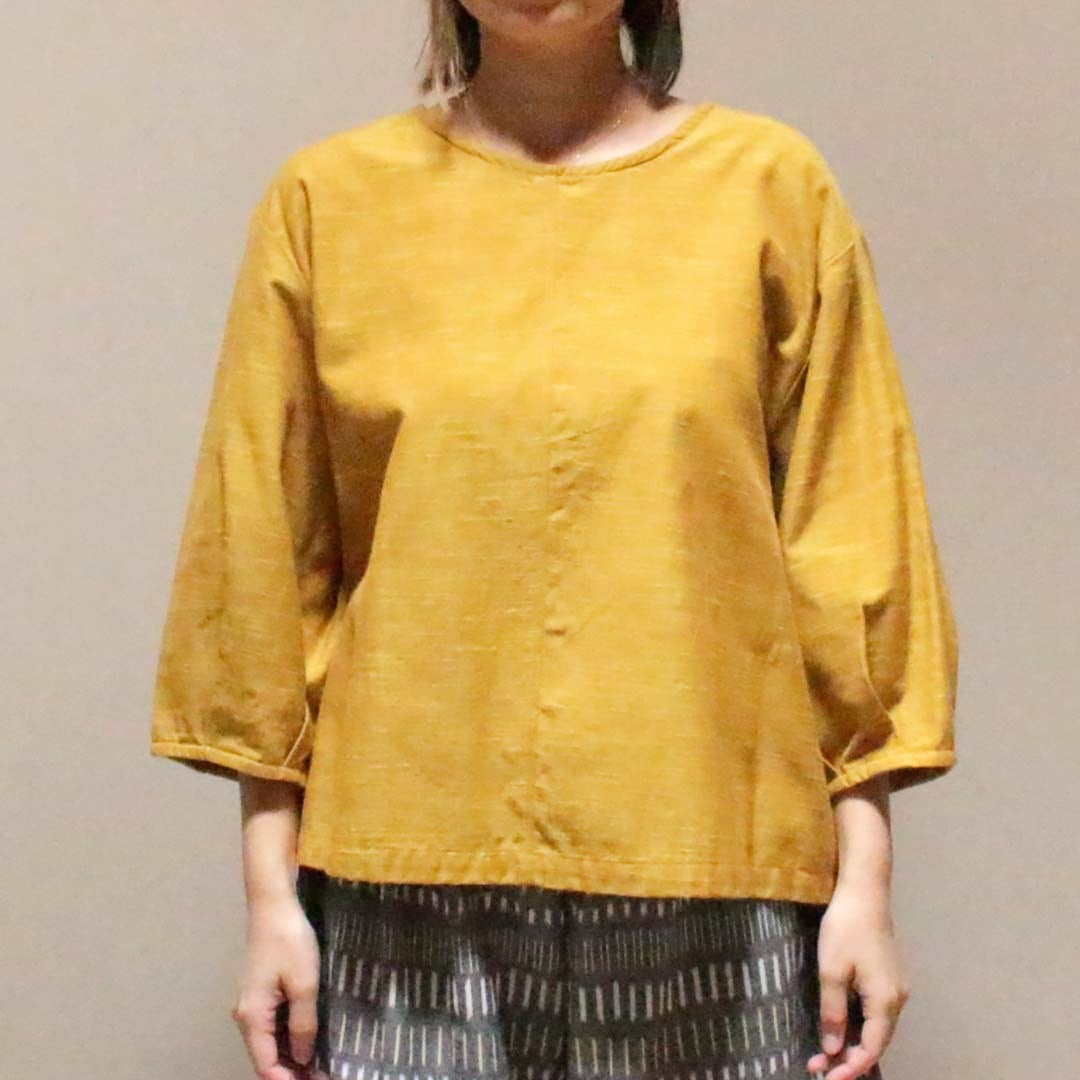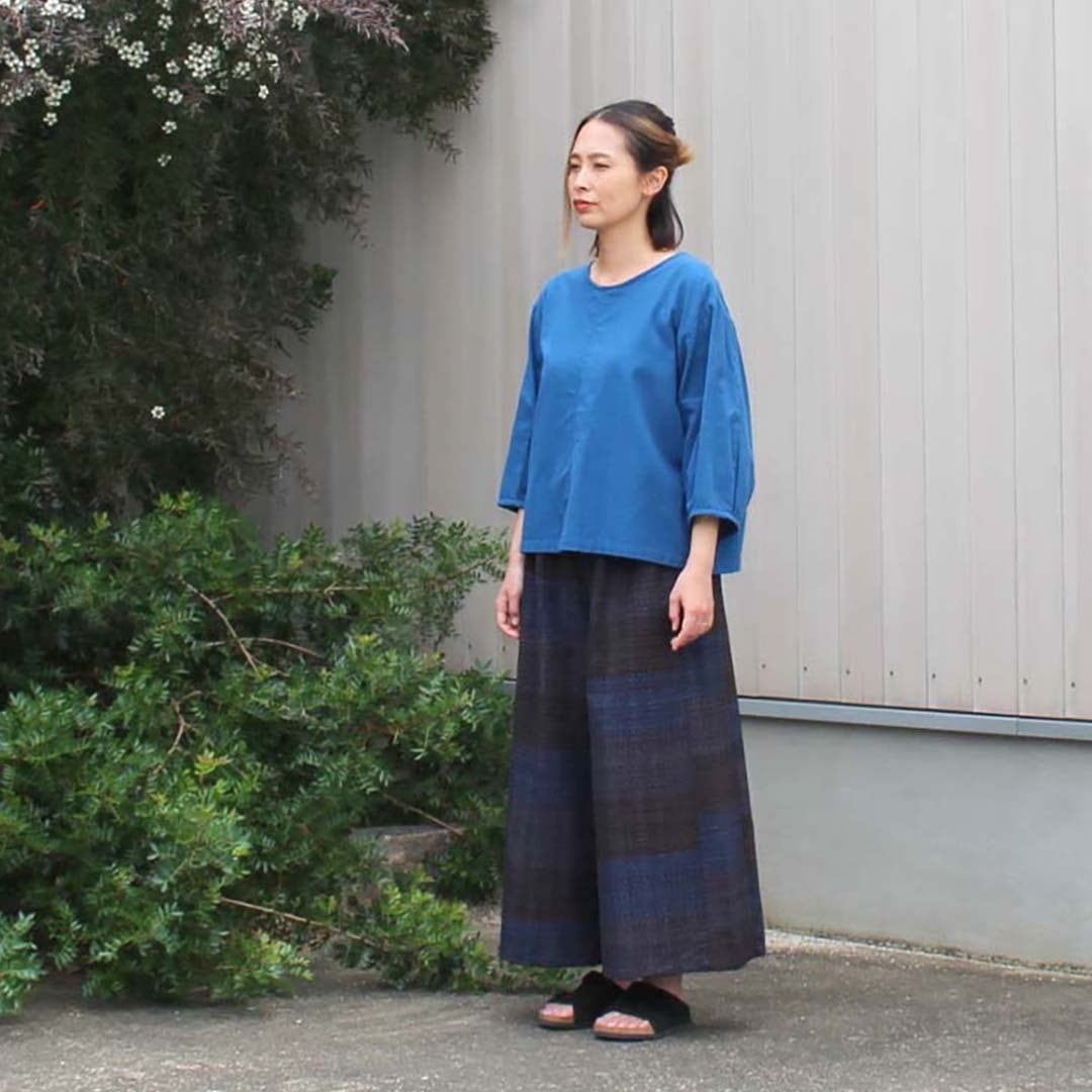 久留米かすりの織機で織り上げられた無地をシンプルなブラウスに仕上げました。