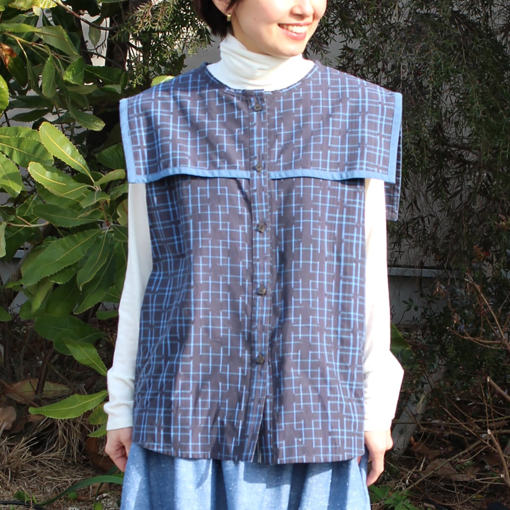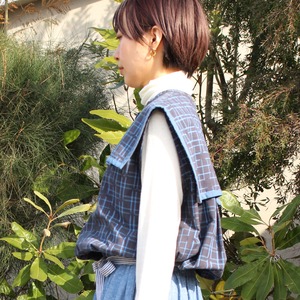 2025/SSセーラー衿ブラウスベスト ブルーラインクロス柄