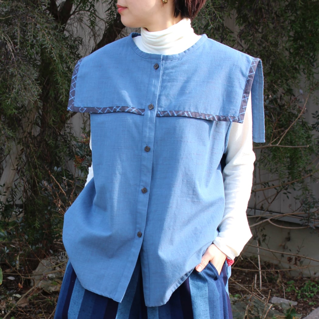 2025/SSセーラー衿ブラウスベスト 無地ライトブルー