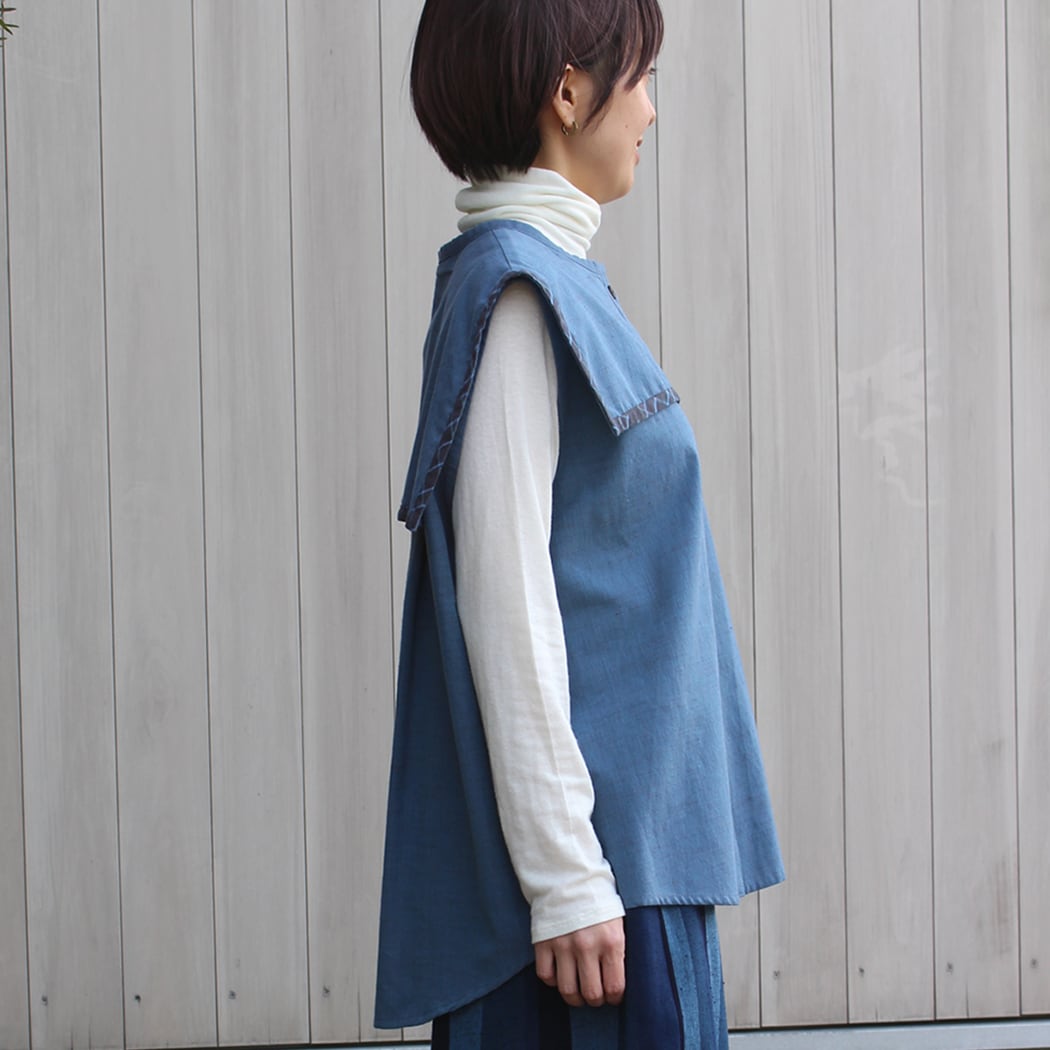 セーラー衿のクラシカルな印象が素敵なノースリーブのブラウスです。